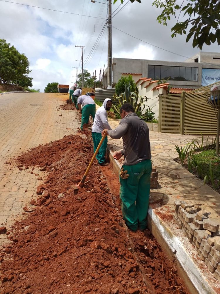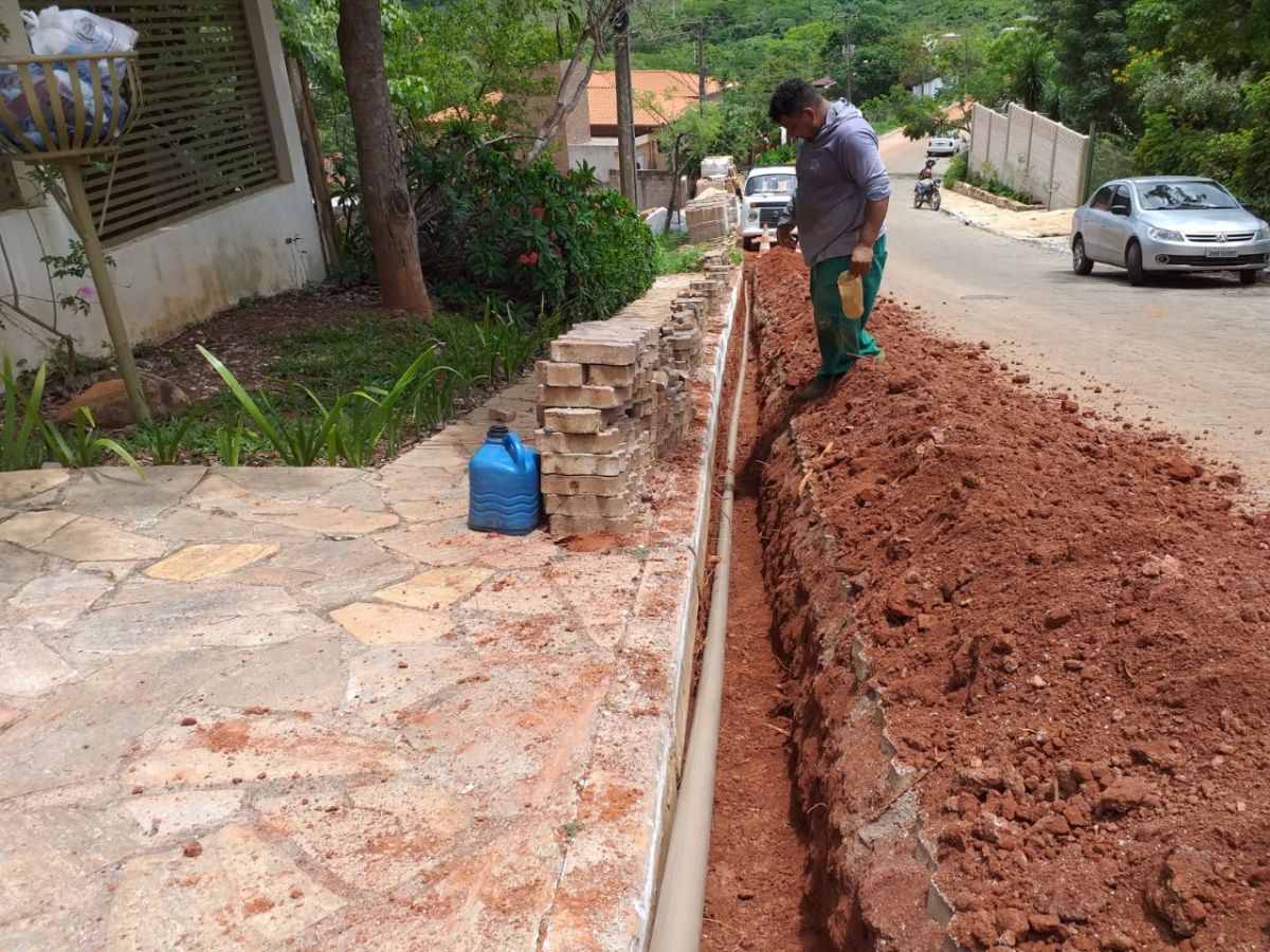 • Abertura de valas para instalação de tubulação para elevação da água do poço da quadra 14 para o reservatório de abastecimento localizado na portaria.