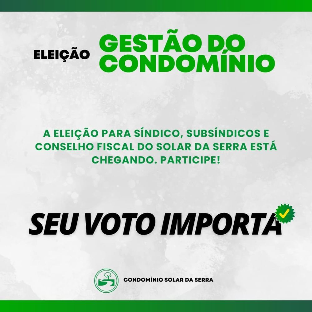 A eleição da nova gestão é um dos momentos mais importantes para o futuro do nosso Condomínio. É neste processo que escolhemos os responsáveis pela administração, pela manutenção do bem-estar coletivo e pela harmonia entre moradores(as) e colaboradores(as).
