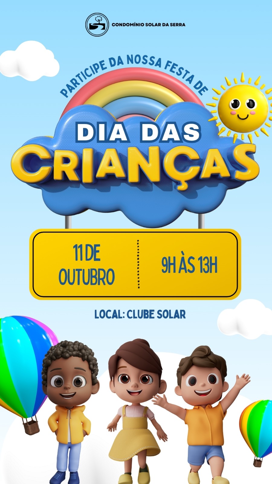 O Dia das Crianças está chegando, e nada melhor do que celebrar a alegria, a imaginação e a energia dos nossos pequenos com uma festa especial no Solar da Serra!